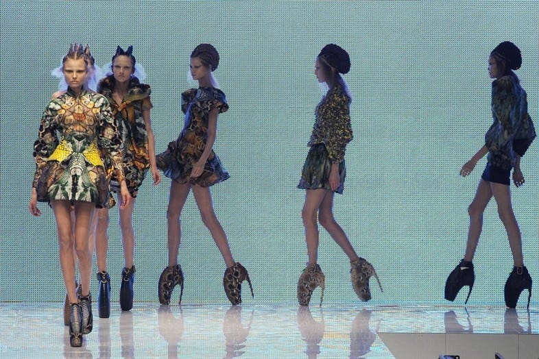 And I watched the Alexander McQueen documentary this week. It's not exactly groundbreaking as documentary, but with a subject like that — images like that, textures like that— how could it not be interesting? You don't have to do anything to make a case for McQueen's genius other than put his work on display. He was such an instinctual artist. The robots and the hologram runway shows were his turns of blustery genius, but I especially loved his tribute to (my favorite film) They Shoot Horses Don't They? It wasn’t just a reenactment. It was more subtle than that. It wasn't mere mimicry; he took the emotional tenor of the film and filtered it into fashion and through his own point-of-view. Watching the documentary, I felt the absence of someone pushing boundaries as he did in any sort of visual culture, not just fashion. People with vision and instincts like that don't come around very often (or rather, they just don't make it to wider public consciousness that way.) Even Isabella Blow’s talent scouting —always hunting for something strikingly new — seems rare in this day and age. Now people wait for things to go viral and consume or capitalize on it. But if something goes viral, it's already too late.